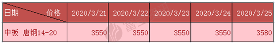 中板】今唐山中板開盤上行,主流基價3580元/噸較昨漲30,30以下缺貨加價50,20以下加80,